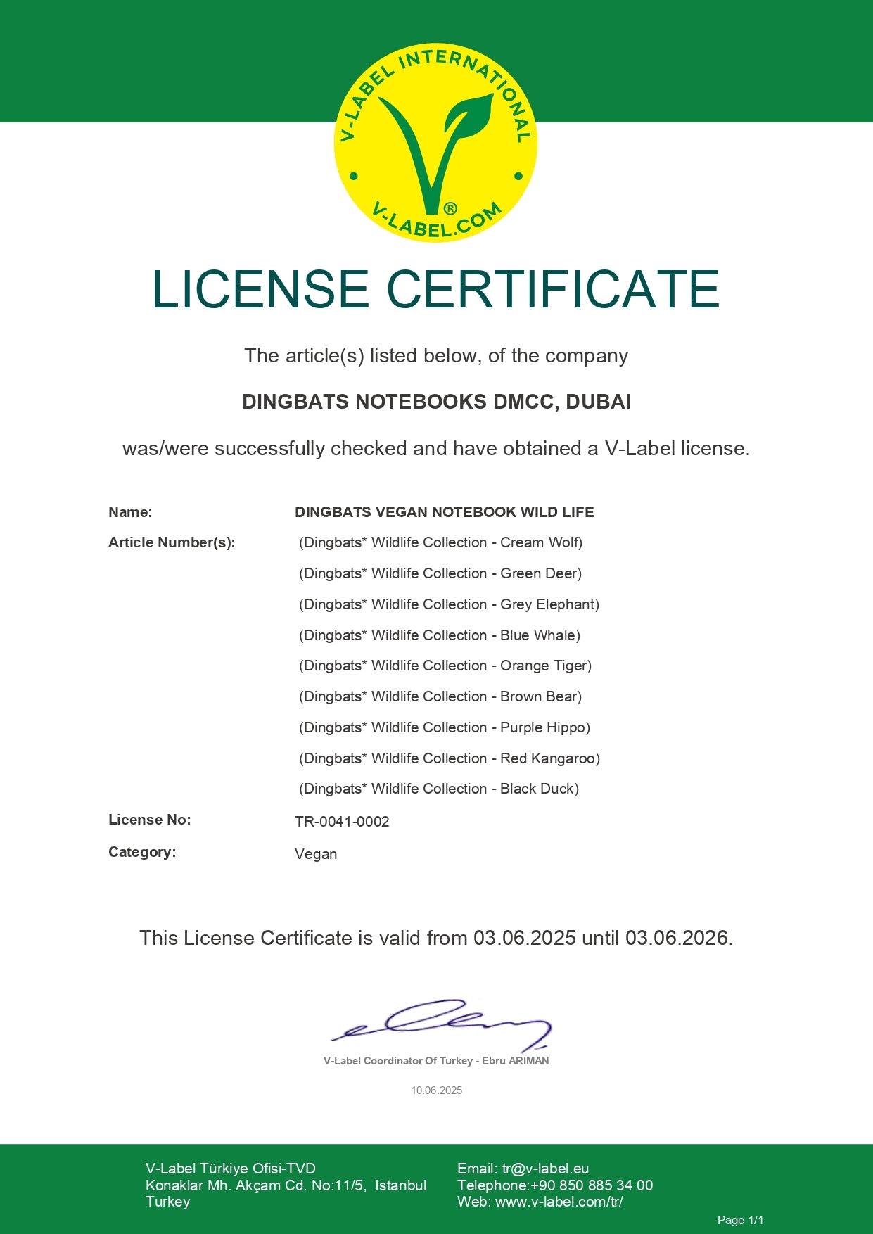 We love animals, which is why they play a starring role on our covers ;) Plus, we’re the first and only notebook brand to be EU V-Label certified, which means we don’t use animal-based adhesives and we’re absolutely, truly, 100% vegan.