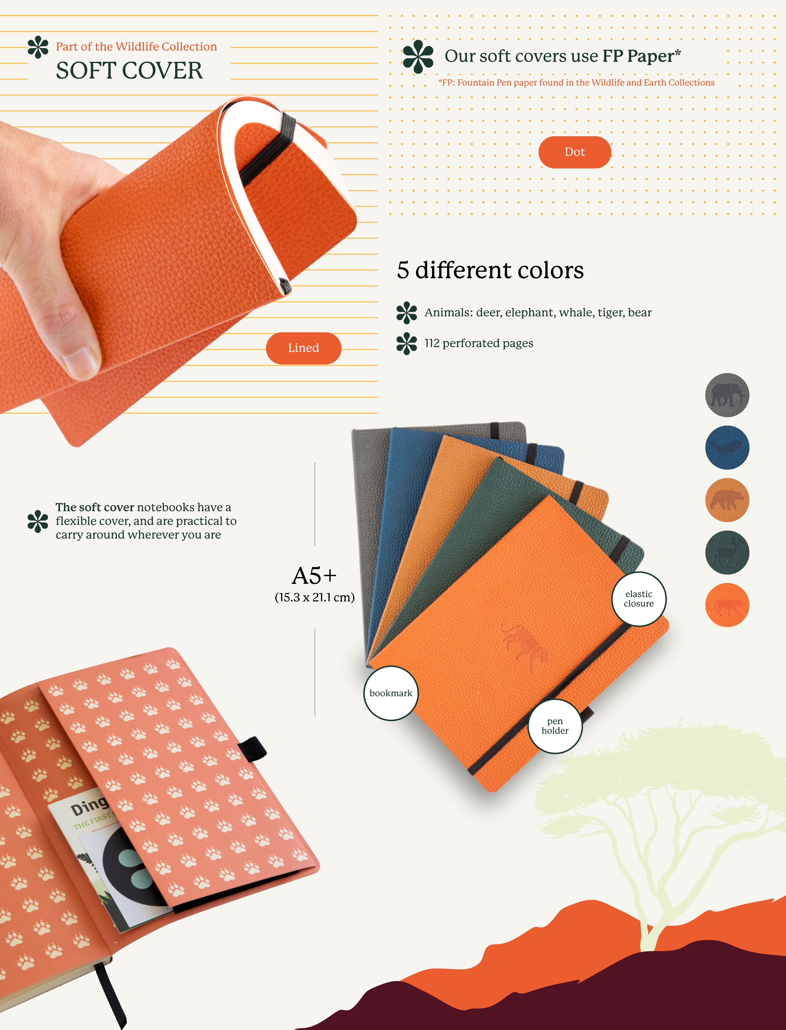 A celebration of some of our planet’s most incredible species, your Dingbats* Wildlife notepad is not only a space for the unbounded possibility of your own creativity, but it’s also a finely bound product inspired by an immense appreciation for the majestic animals we’re lucky to share this planet with.From elephants and deers to whales and tigers, each of the notebooks in this collection comes debossed with your animal of choice on the front cover. With 112 micro-perforated pages, your Dingbats* Wildlife softcover notebook has a flexible cover, is practical to carry around, and includes: